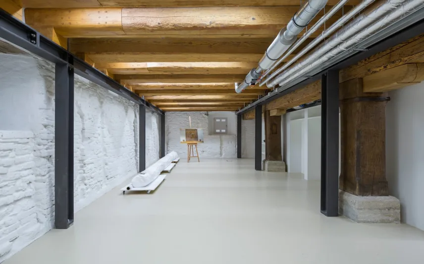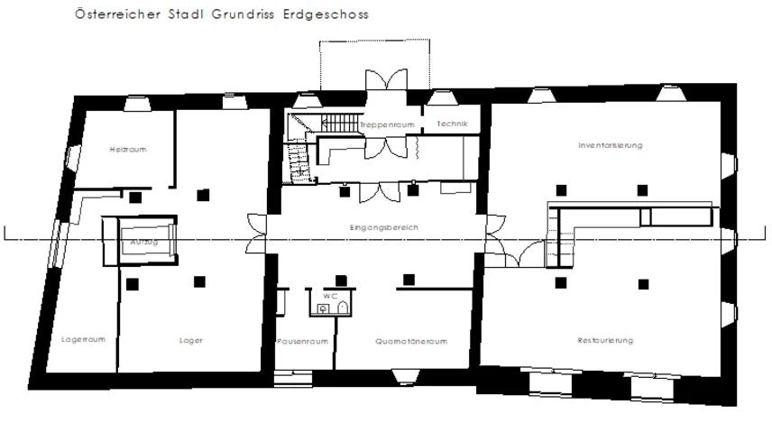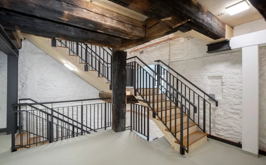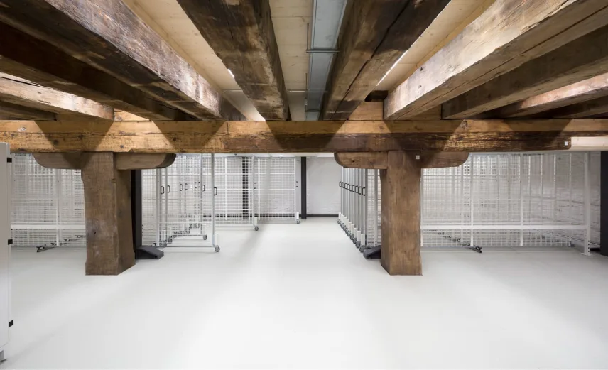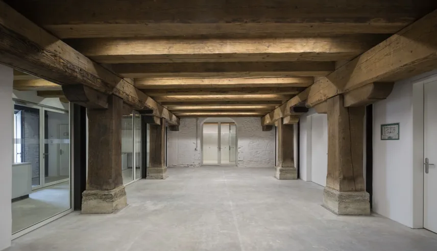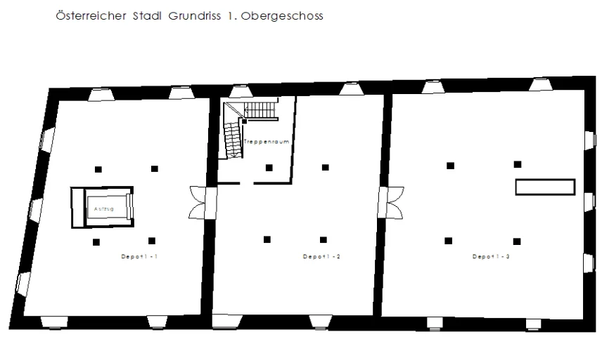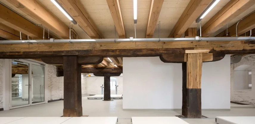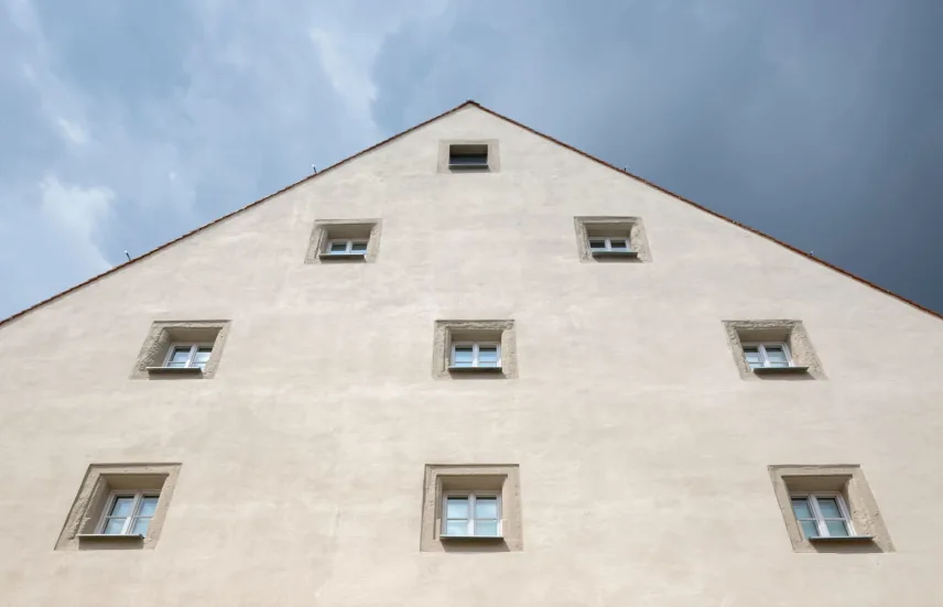 The so-called "Austrian barn" at the river danube in Regensburg (UNESCO world heritage) was first mentioned in 1653 and rebuilt several times over the centuries. The mighty, historical, listed building was u.a. used as salt storage and has now been renovated as a museum depot for the new Museum of Bavarian History. With 18 x 40 m outside masses, 3 normal floors and 3 attic floors and 18 m height, the building is a powerful building volume directly on the Danube bank. The aim of the refurbishment was, on the one hand, to provide exemplary monumental upgrading of the existing building components and to add the structures to be created clearly legible to the historical inventory.