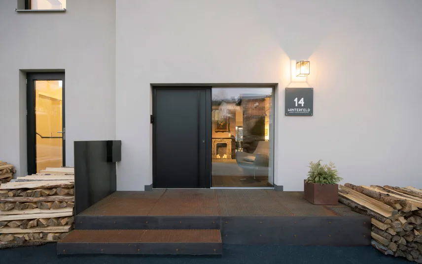 Besondere Nutzräume, wie ein Ski-und Fahrradlager mit direktem Hauszugang, Motorradgarage, Lademöglichkeiten für E-Bikes oder Elektroautos ergänzen das moderne Raumangebot funktionell.