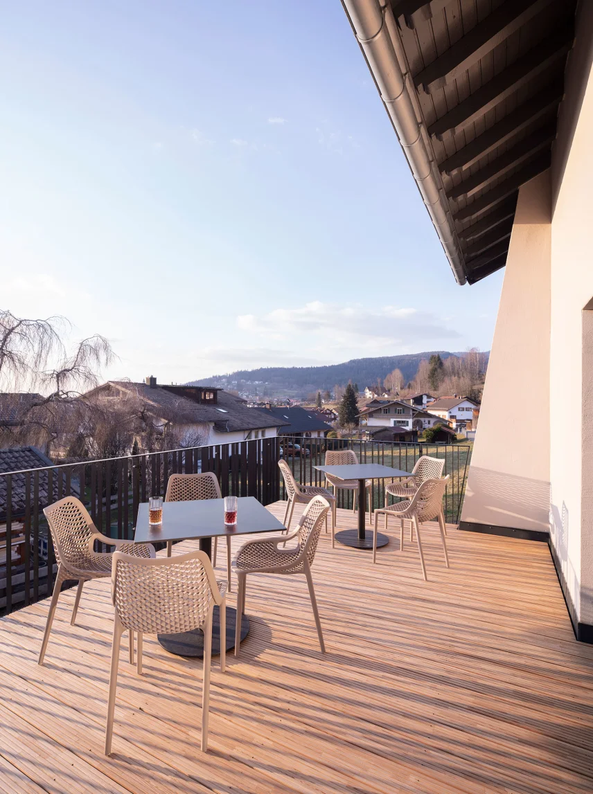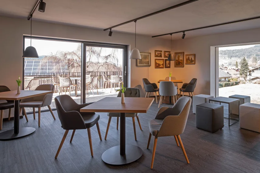 Ein offenes Lobbykonzept mit Platz für Empfang, Kommunikation und Entspannung ist wichtiger Bestandteil und Ausdruck heutiger, moderner Gastlichkeit und soll neue, sportliche und ästhetisch anspruchsvolle Zielgruppen ansprechen. Frei bewegliche Tische und bequeme Sitzmöbel sollen flexibel Platz für rund 30 Personen bieten. Der gesamte Raum mit viel Tageslicht hat einen Zugang auf die Terrasse als Freibereich mit Ausblick über Bodenmais.